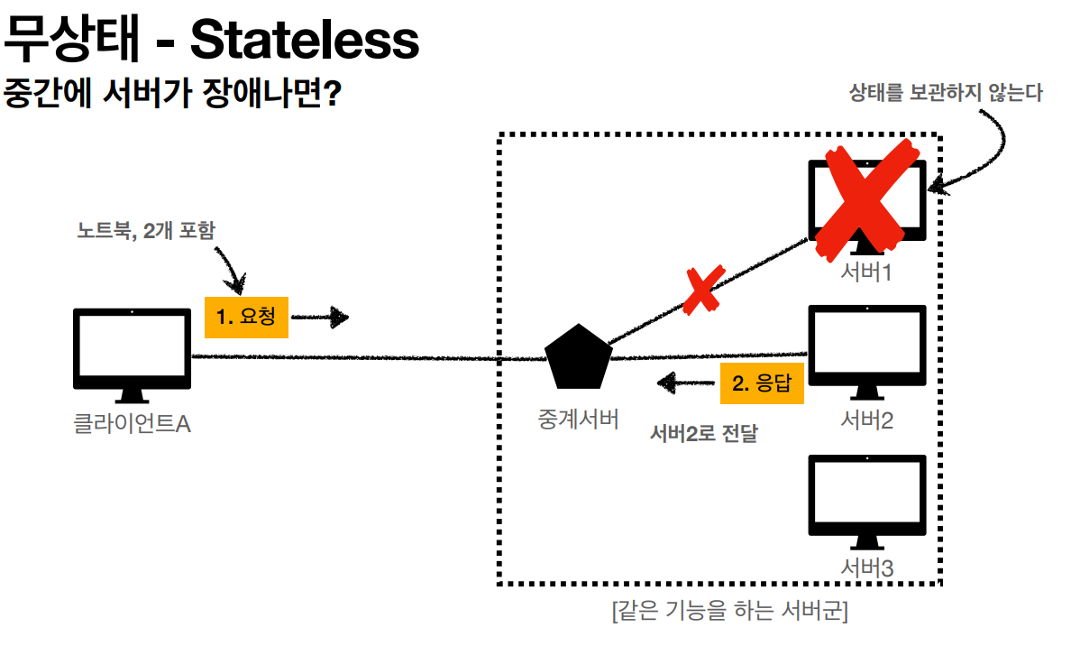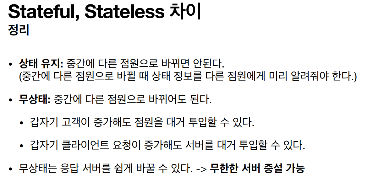 - 무상태 : 로그인이 필요 없는 단순한 서비스 소개 화면