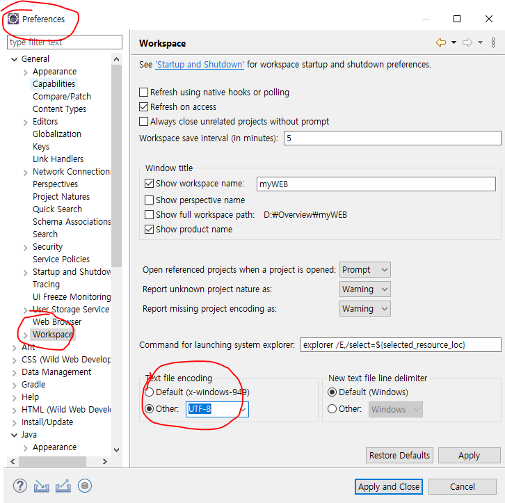 window- prefernces-general-Workspace-endocing (UTF-8)