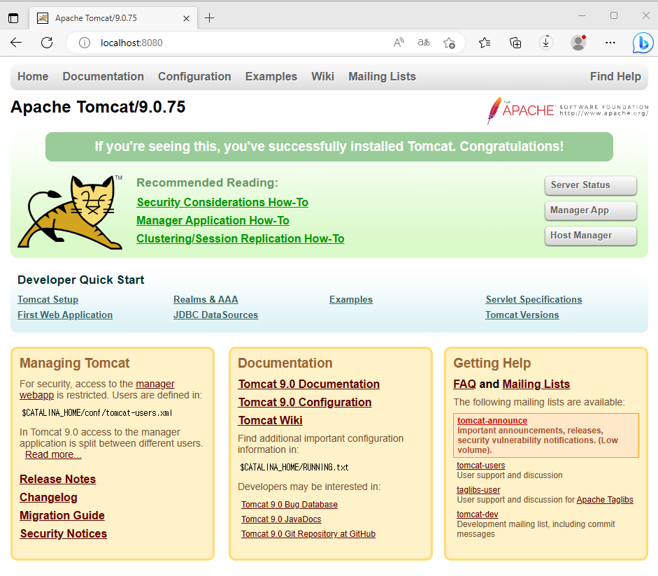 웹서버에 localhost:8080을 입력했을때 어래의 화면이 뜨면 톰캣 구현 성공!!