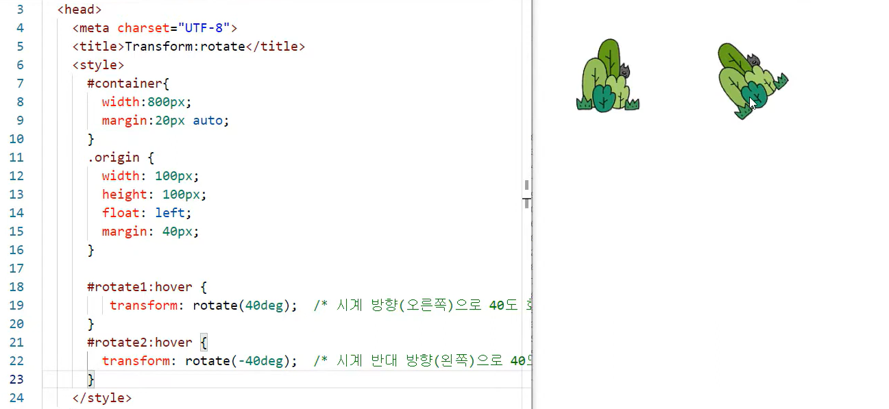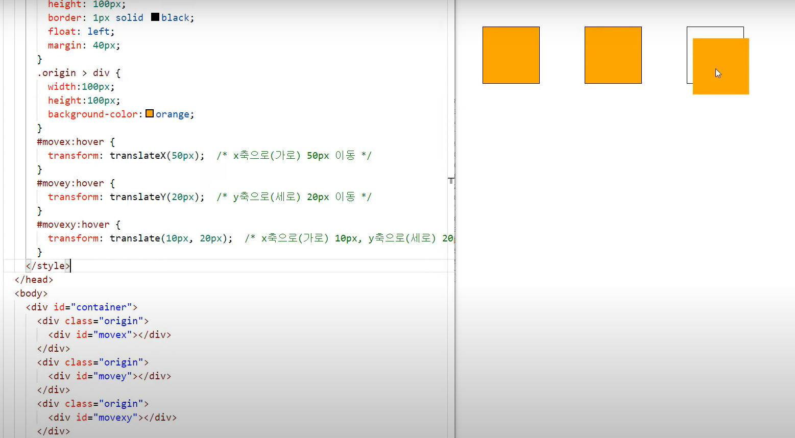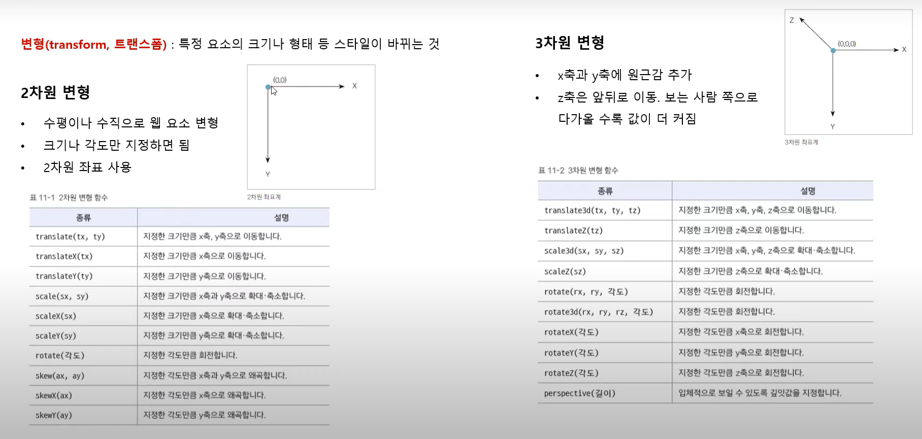transform : 웹 요소의 위치나 크기를 바꿈으로써 시각적인 효과를 만들어 줌