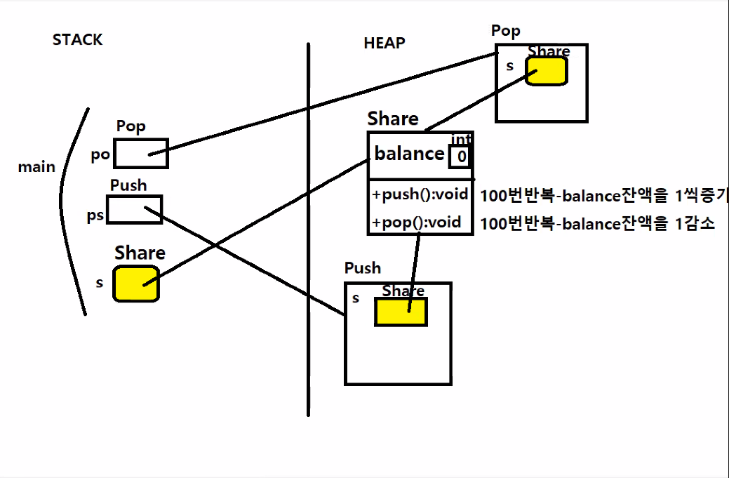 synchrorized( this.share객체 ) { }