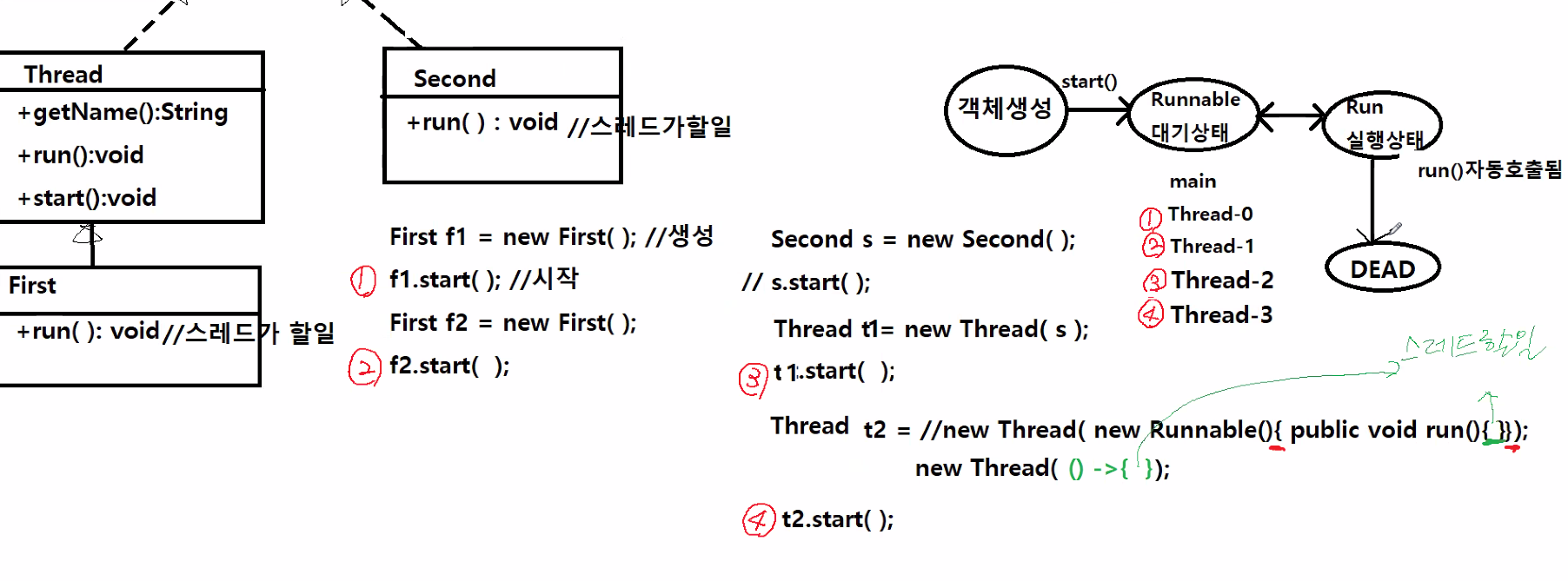thread : ,프로그램 내에서 실행되는 프로그램 제 흐름. 프로세스 내에 thread가 두 개라면 두 개의 코드 실행흐름이 생긴다는 것을 의미.