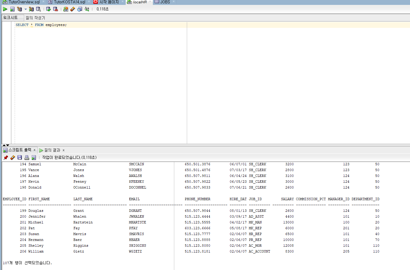 WHERE job_title LIKE 'SALES%'; - 직무명이 Manager로 끝나는 모든 직무번호와 직무명을 출력하시오