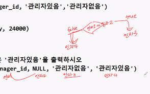 SELECT employee_id, manager_id, NVL2(manager_id, '관리자있음' , '관리자없음')