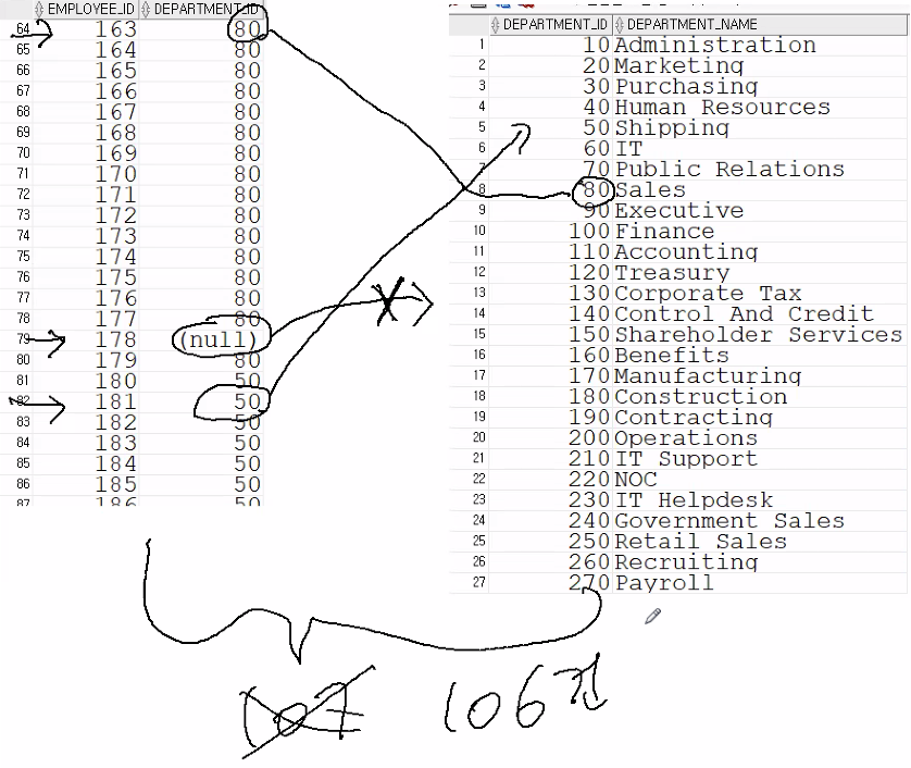 ON (e.department_id = d.department_id); --부서 없는 사원도 출력 +사원없는 부서 : 123건
