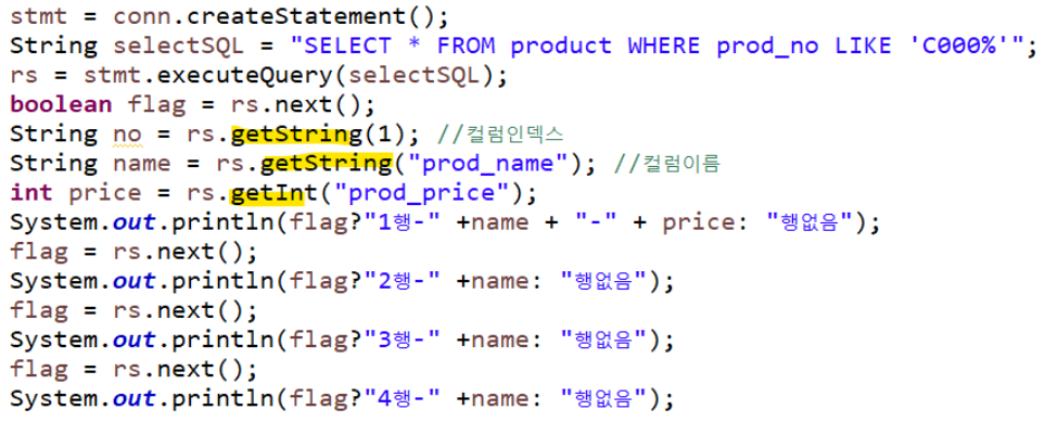 ResultSet rs = null; //sql실행 후 select 결과를 저장하는 객체