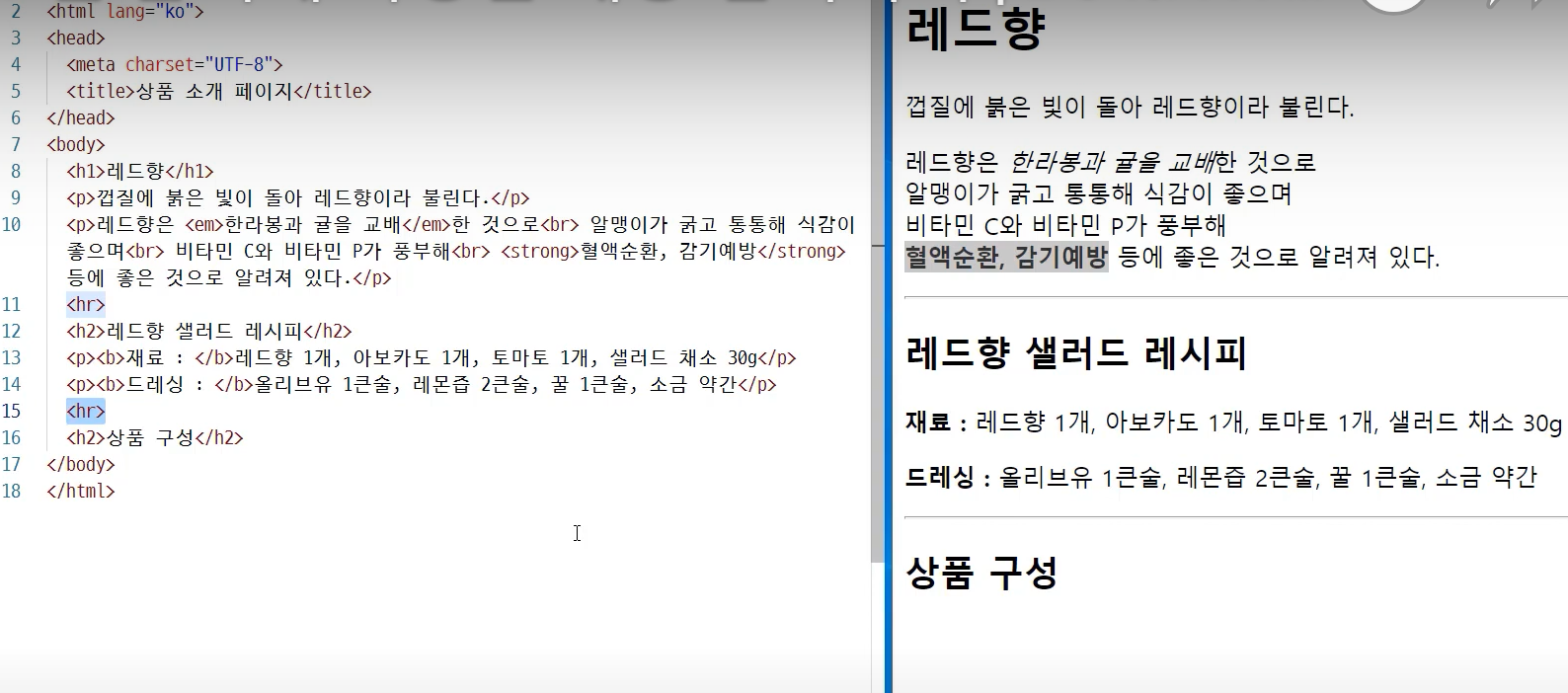 <hr> 가로줄을 넣어줌. 닫는 태그 없음.