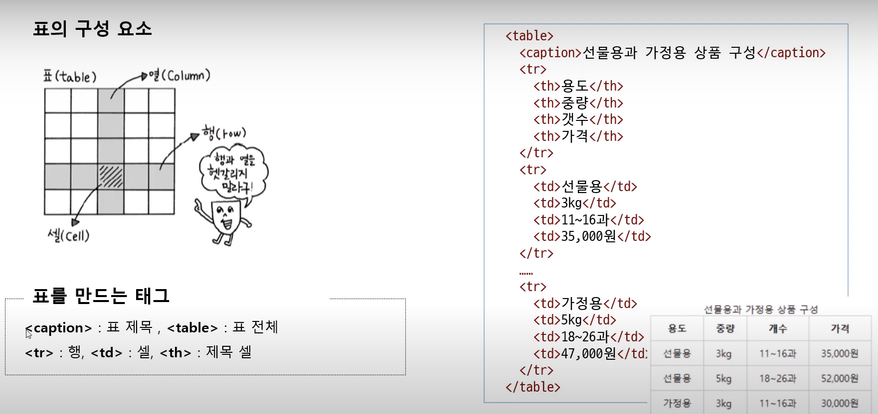 <tr> 하나의 행, <td>행 안에 들어가는 각각의 셀