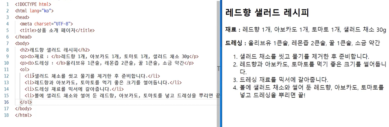 <ol> : ordered list로 순서가 있는 목록. 1,2,3,4~