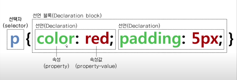 h1, p (selector : 선택자) : 스타일이 적용될 태그