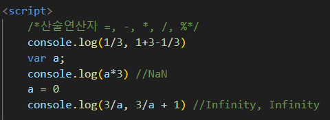 결과 값 : NaN (Not a Number) - a는 숫자가 아닌 문자이기 때문에