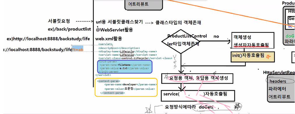 요청할때마다 servlet객체가 있는 경우 doGet( ), doPost( )호출