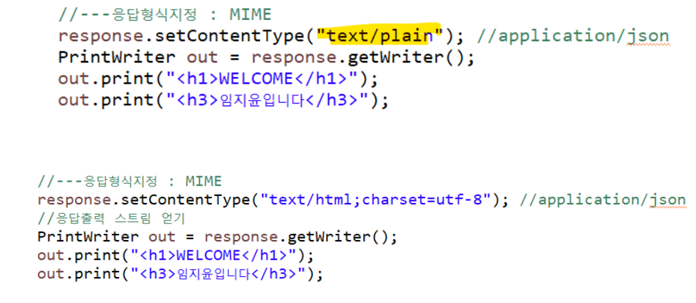 HttpServletResponse객체를 이용해서 응답 메세지 작성하기