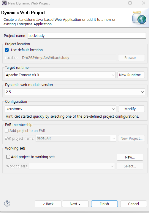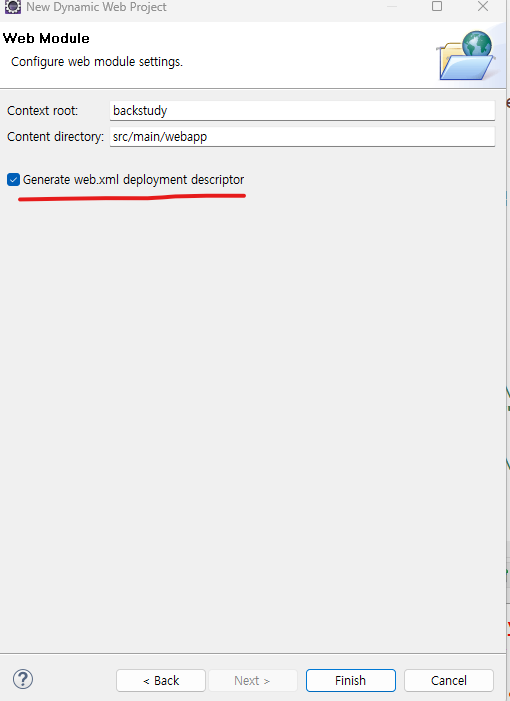 2.5버전은 web.xml (배치 기술서)을 만들어주어야 함.