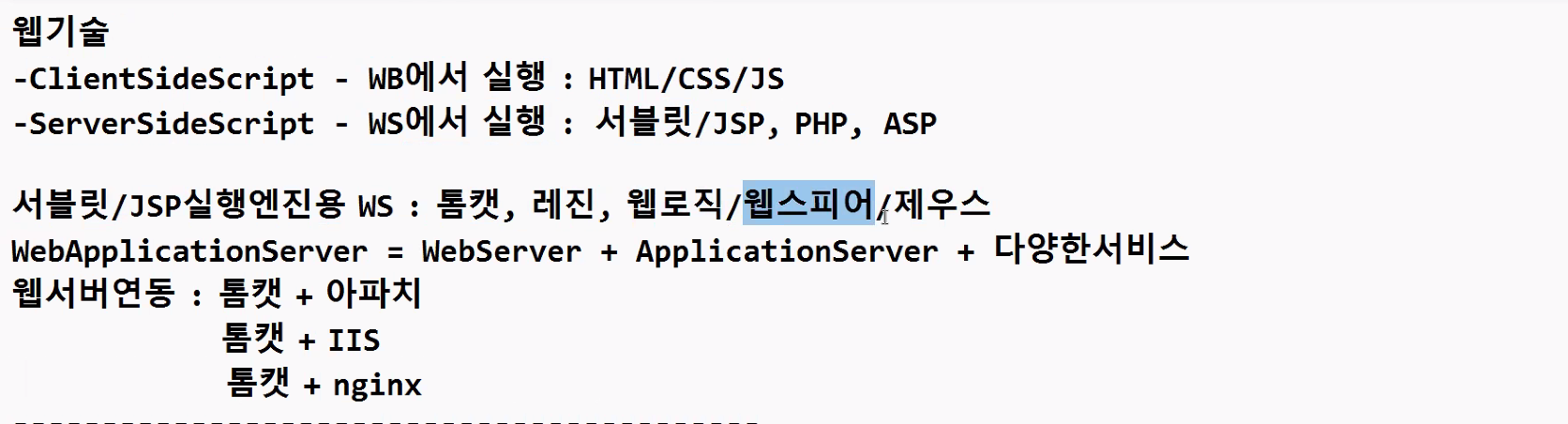 서블릿/JSP실행 엔진용 WS : 톰캣, 레진, 웹로직/웹스피어/제우스