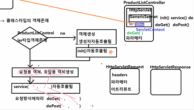 요청할때마다 servlet객체가 있는 경우 doGet( ), doPost( )호출