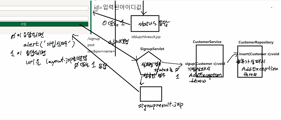 요청 성공 시 , 중복된 경우 status를 서블릿에서 ( id 중복시 0, 사용가능 시 1로 설정) 응답