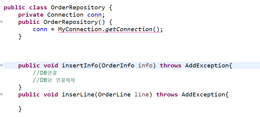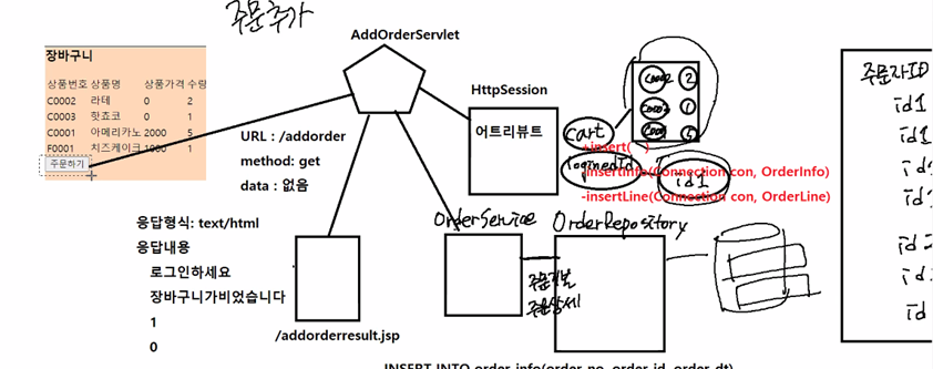 data transfer object필요 (orderinfo/ orderline 클래스 필요)