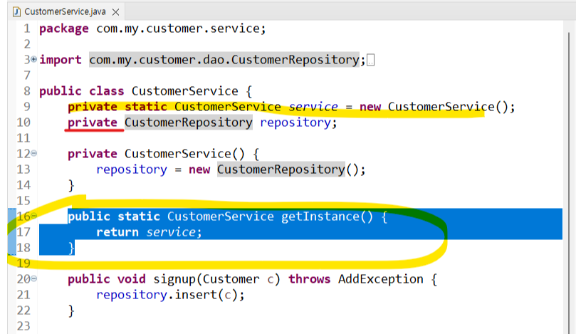 서비스 객체를 싱글톤 패턴으로 만드는 방법