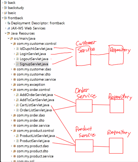 서블릿마다 service객체와 respository객체가 생성되어 메모리 낭비가