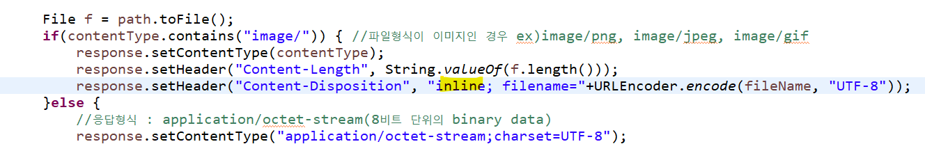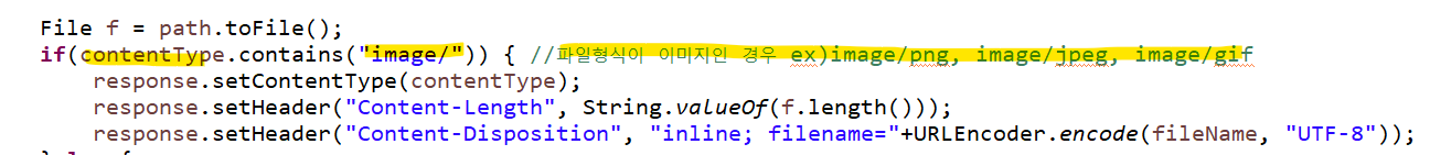 이미지 파일 요청을 하면 톰캣에서 파일을 찾아 읽고, 그대로 응답하도록 되어 있음.