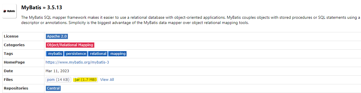 mybatis 라이브러리 다운