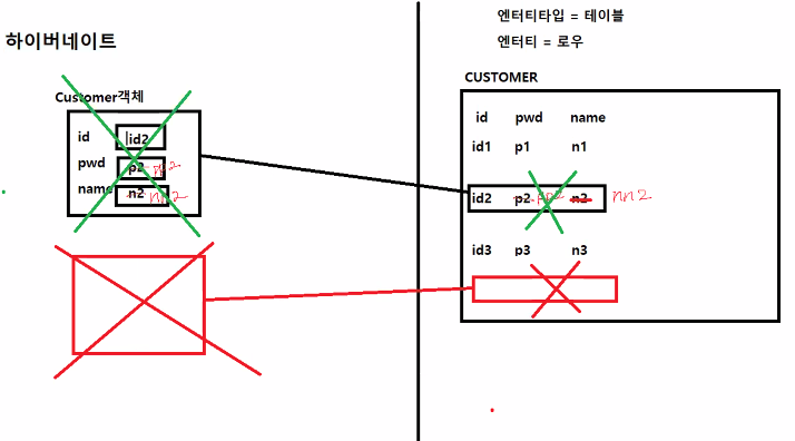 엔터티가 삭제되면 객체도 사라짐.