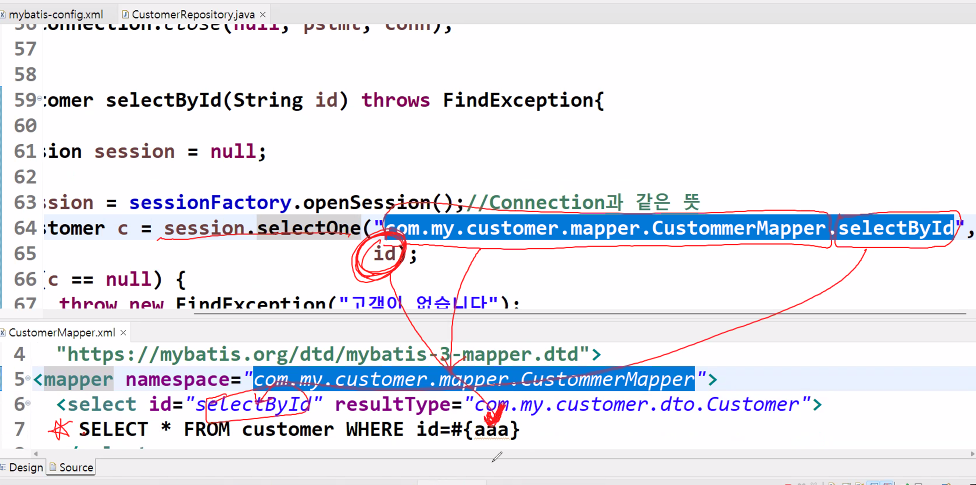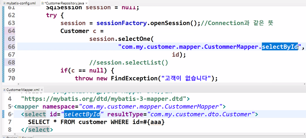 sql이 틀린경우 repository코드를 재컴파일 할 필요 없이 xml에서 sql구문만 변경해주면 된다!