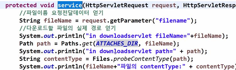 배포된 프로젝트 경로 밑인 att폴더에 첨부파일들이 저장되는 경우, 다운로드를 어렵게 할 필요가 없다.