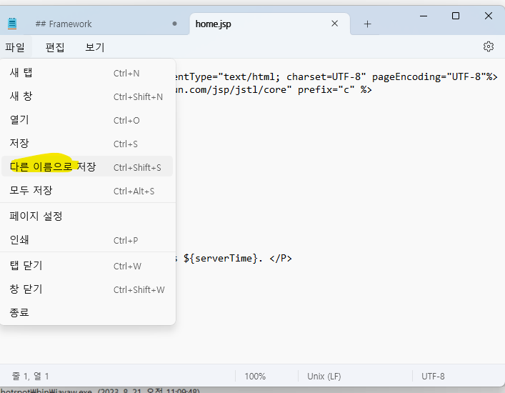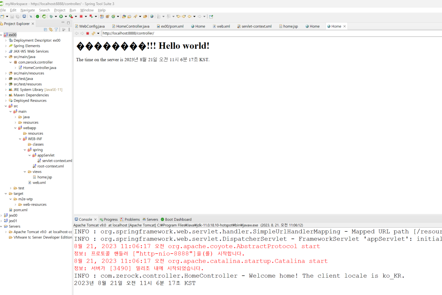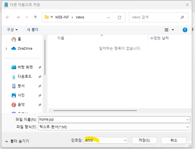 인코딩 ANSI로 변경 후, 서버를 켜봤더니 아래처럼 한글이 깨져 있는 것을 확인 해 볼수 있다.