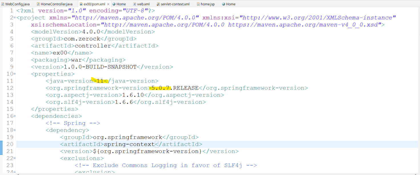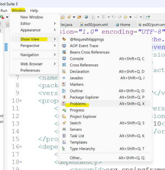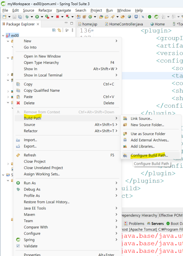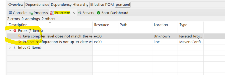삭제하고 나면 pom.xml에서 에러 발생 -> 설정 변경 필요