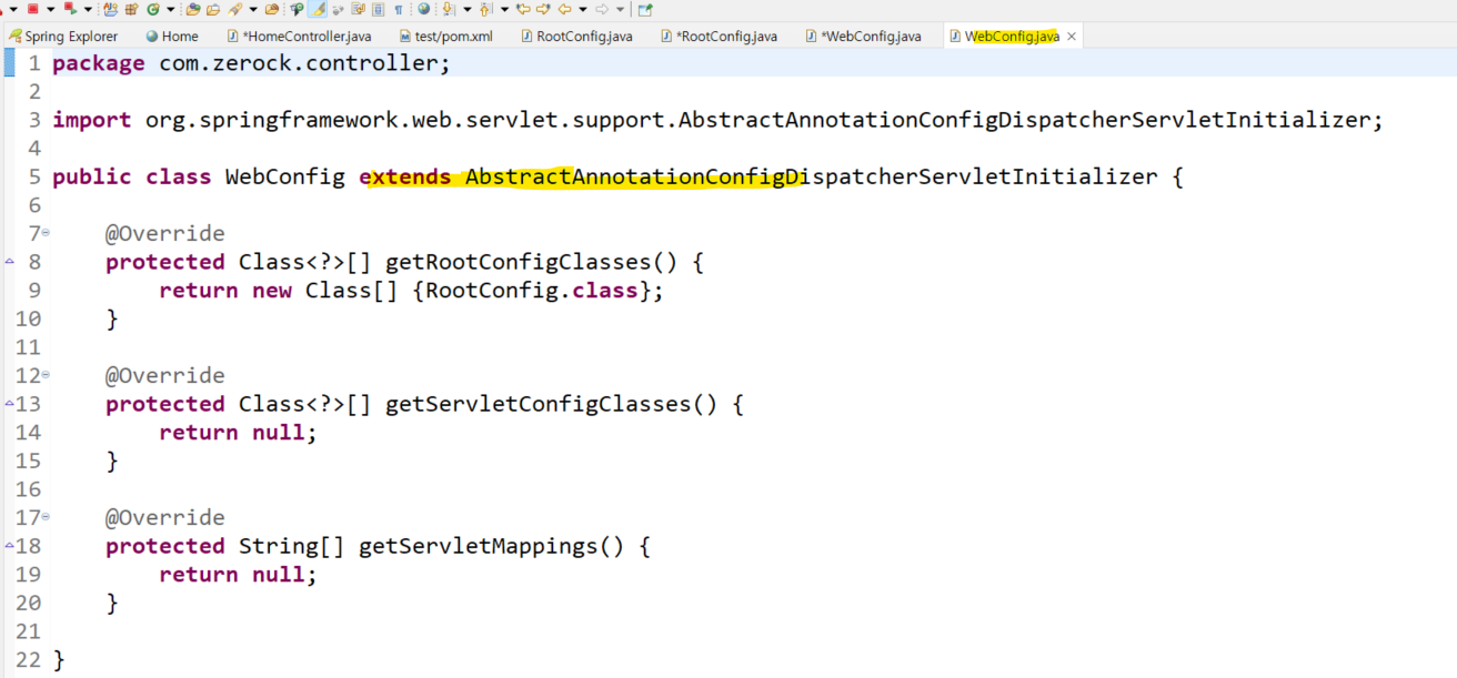 기존 프로젝트에서는 web.xml을 이용하여 스프링을 구동시켰지만, XML을 사용하지 않는 경우 이 역할을 대신하는 클래스를 작성하여 처리함.