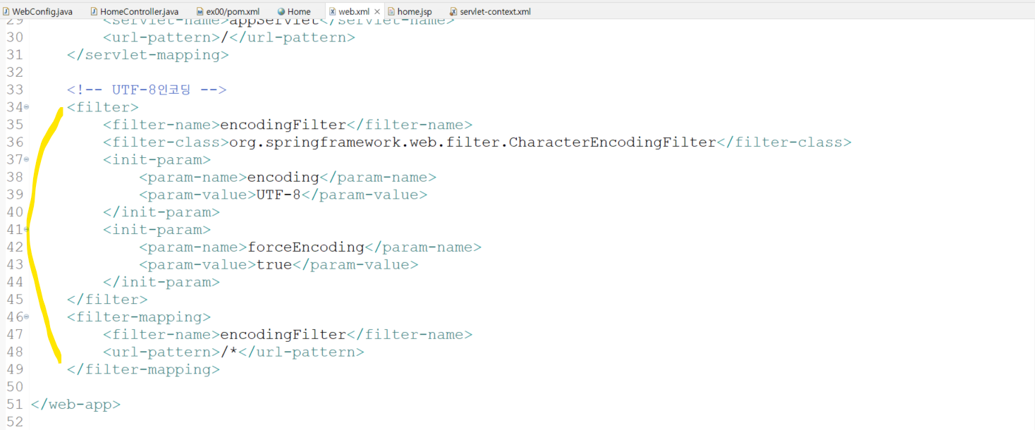 3) 인코딩 (web.xml 인코딩 코드를 추가)