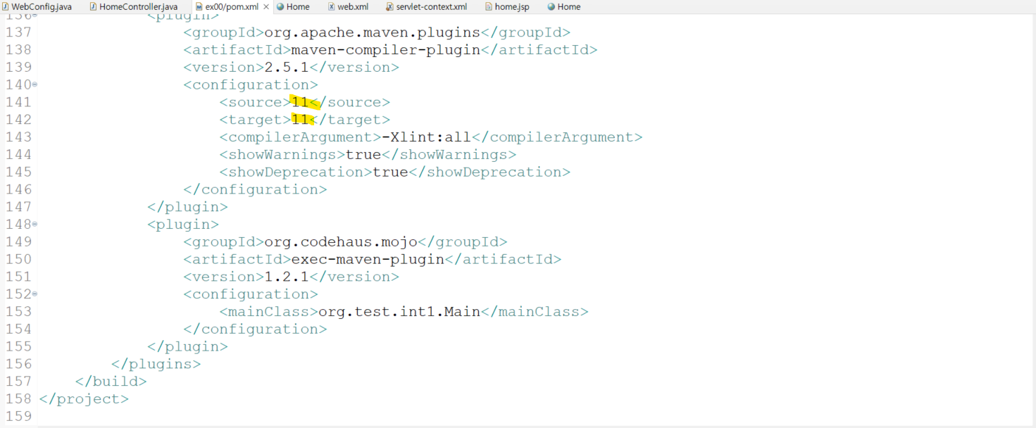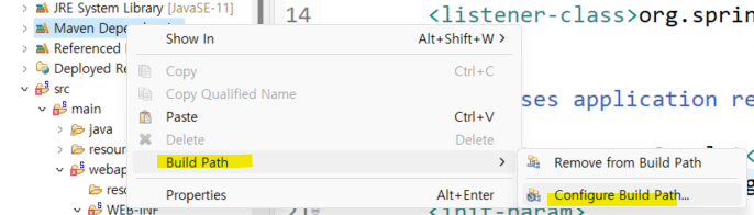 삭제하고 나면 pom.xml에서 에러 발생 -> 설정 변경 필요