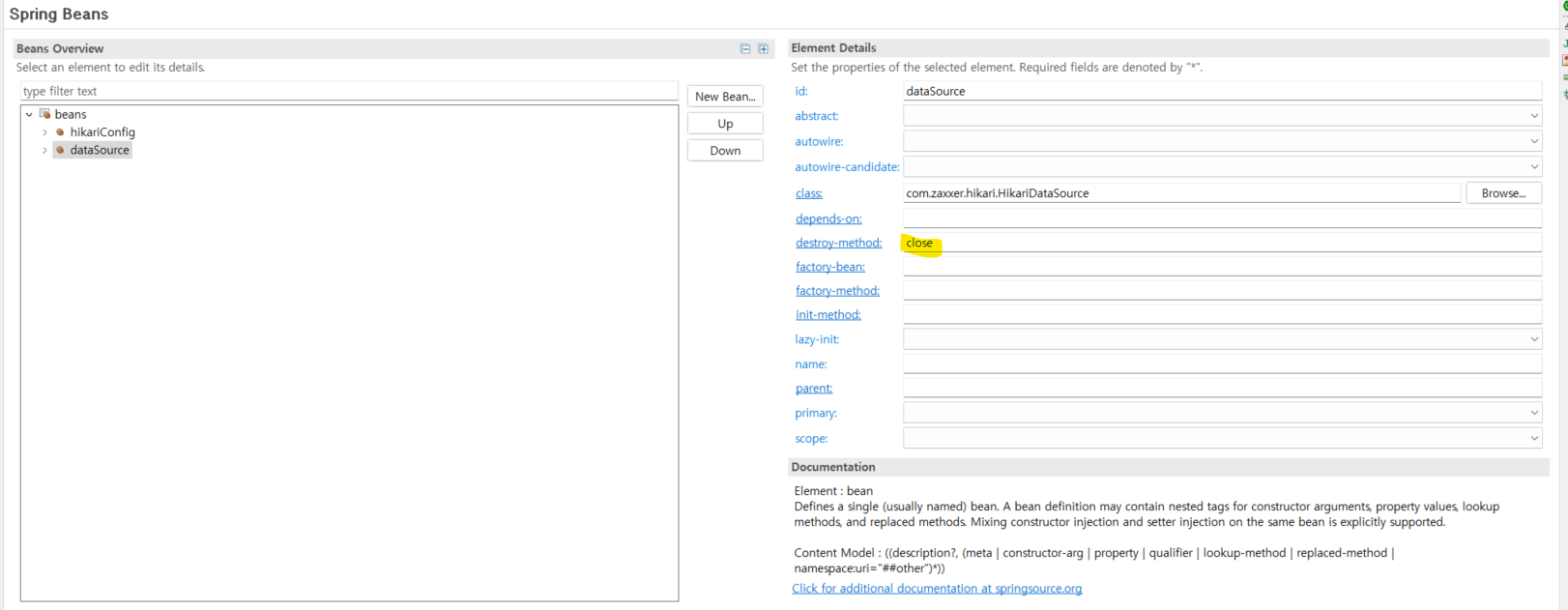DB와 접속을 하기위한 Configuration을 갖고있는 Bean필요