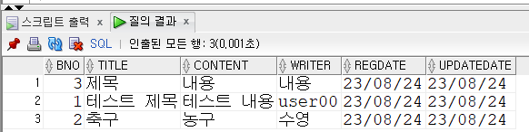 values (seq_board.nextval, '테스트 제목', '테스트 내용', 'user00');