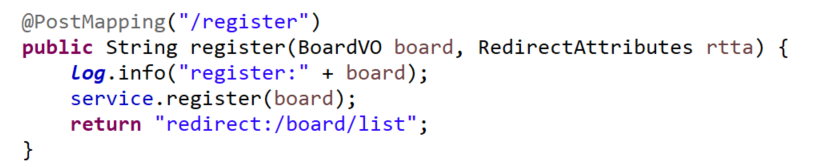 redirect를 하면 register를 통해 요청하게 되면 url이 자동으로 list로 재요청하고,