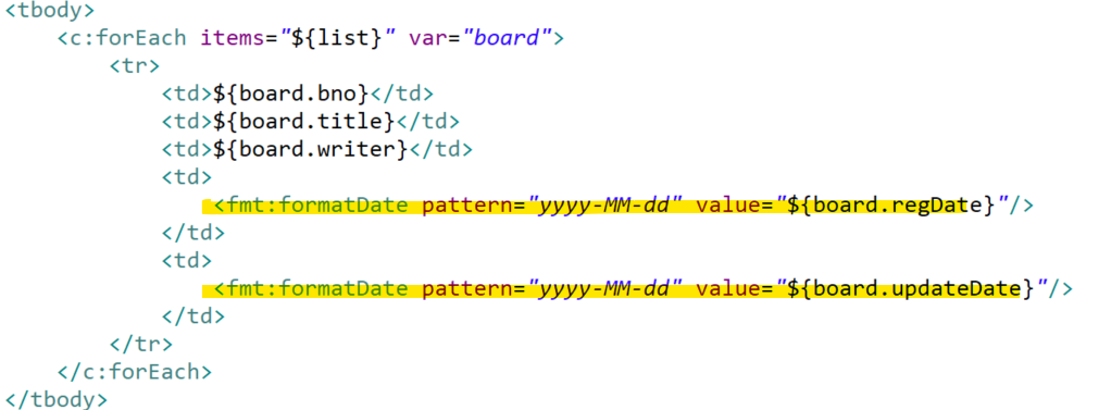list.jsp는 모델에 들어가 있는 컬렉션을 출력하게끔 만든 파일이다.