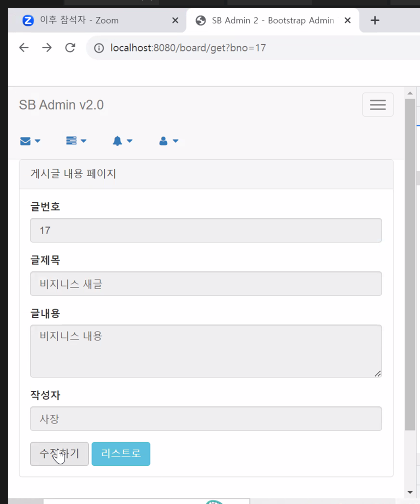 board/list페이지에 게시글을 클릭 ->수정하기 수정버튼-> 수정하기 페이지로 변경 -> 게시판에 수정된 내용 확인 가능
