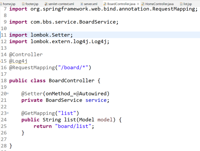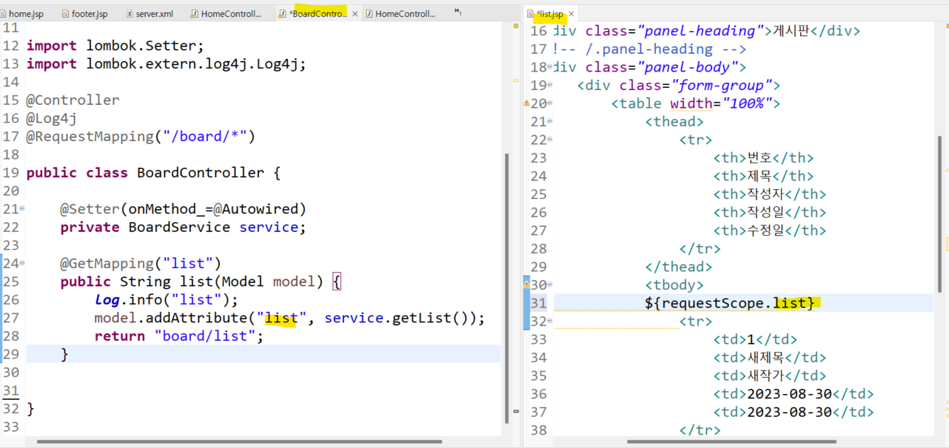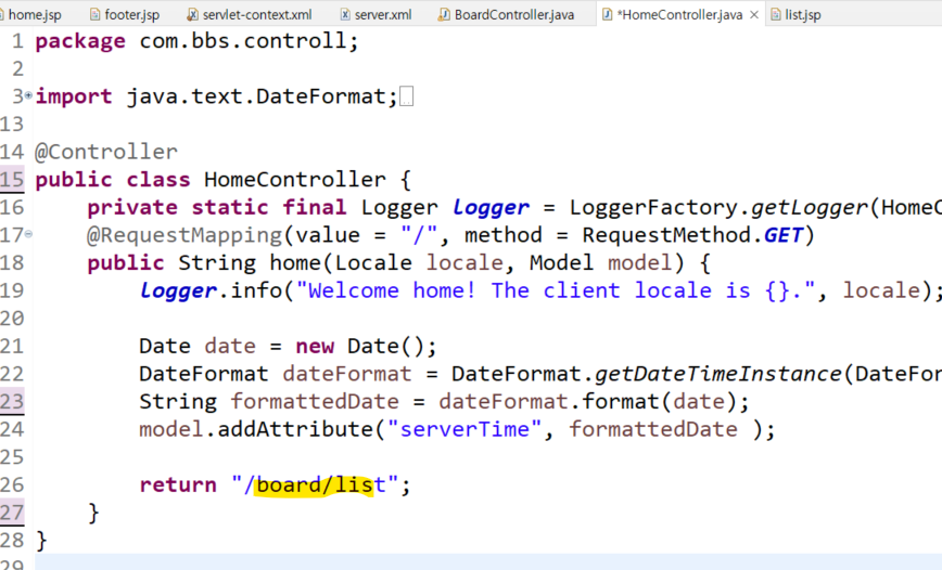 요청을 넣을시 아래와같이 HomeController와 BoardController가 찍히는데