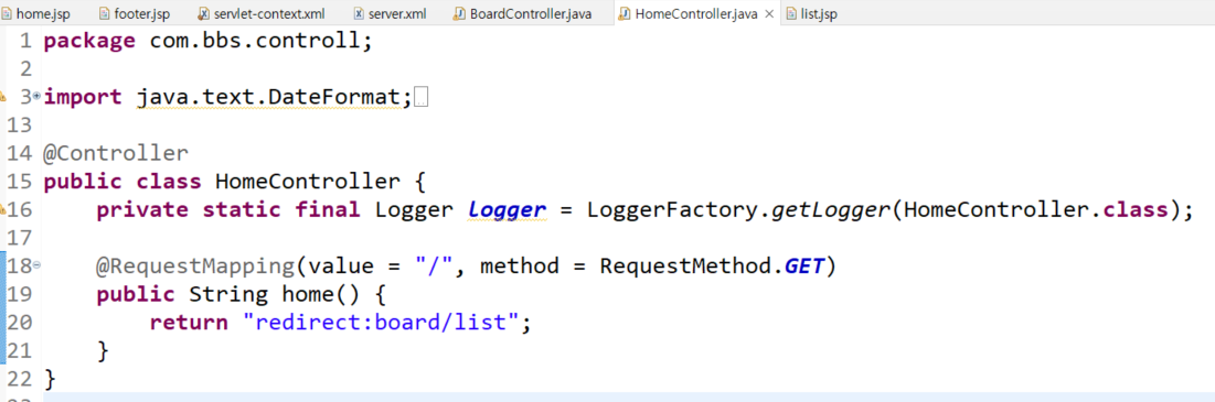 /로 요청시 board/list로 가게끔 하고싶으면,
