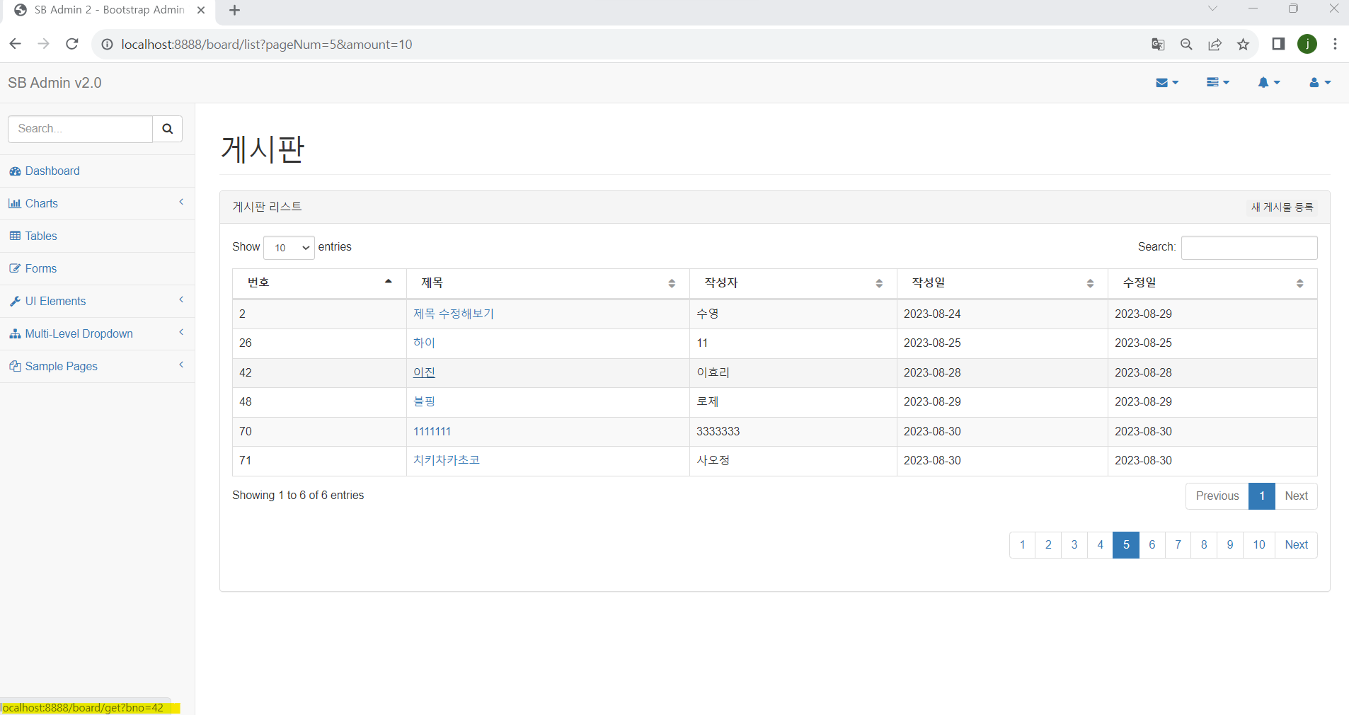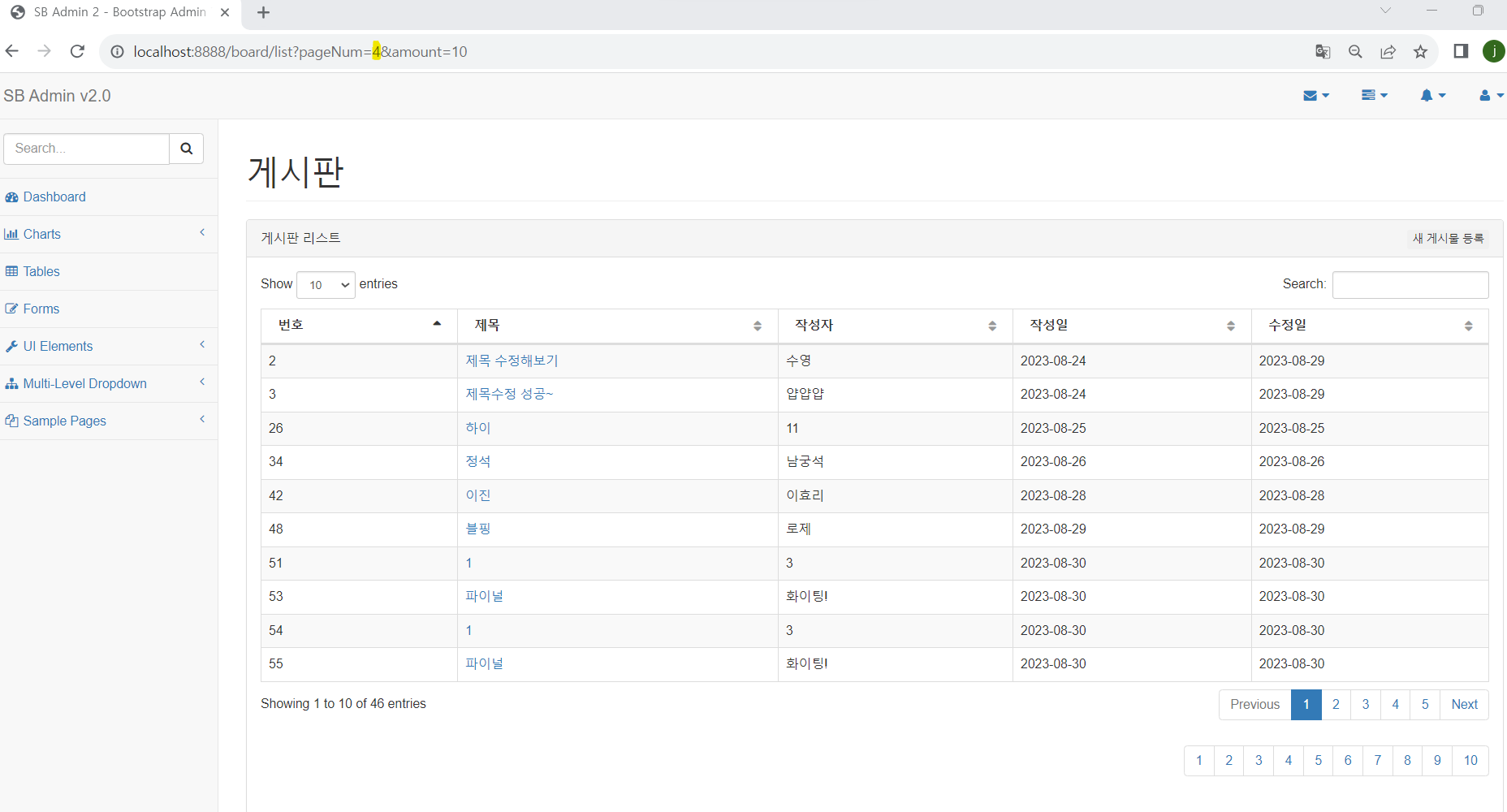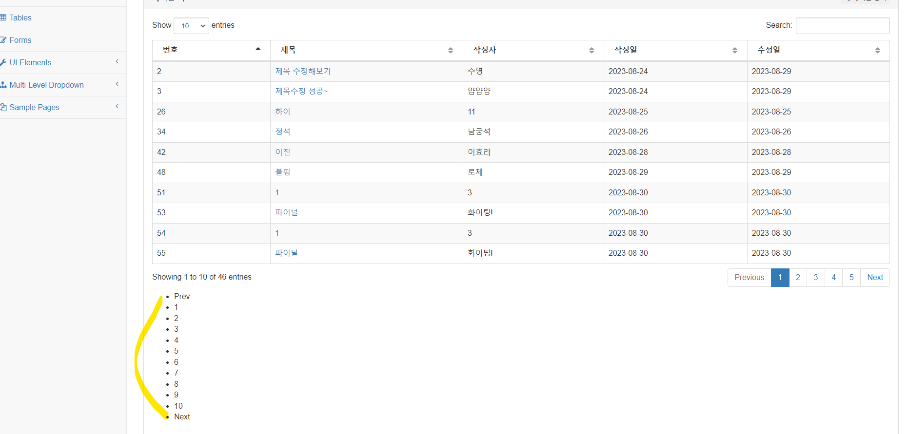 누른페이지 번호로 바뀐다. 페이지 4를 눌렀더니 위에 4로 바뀜.