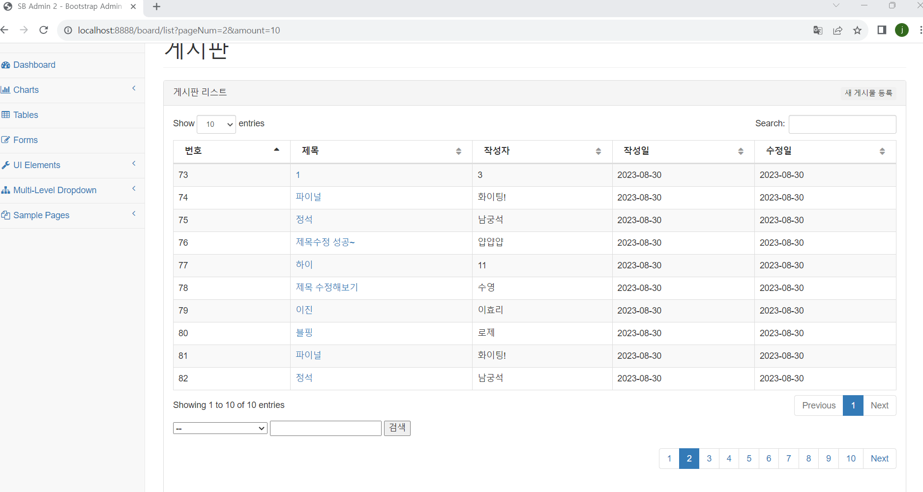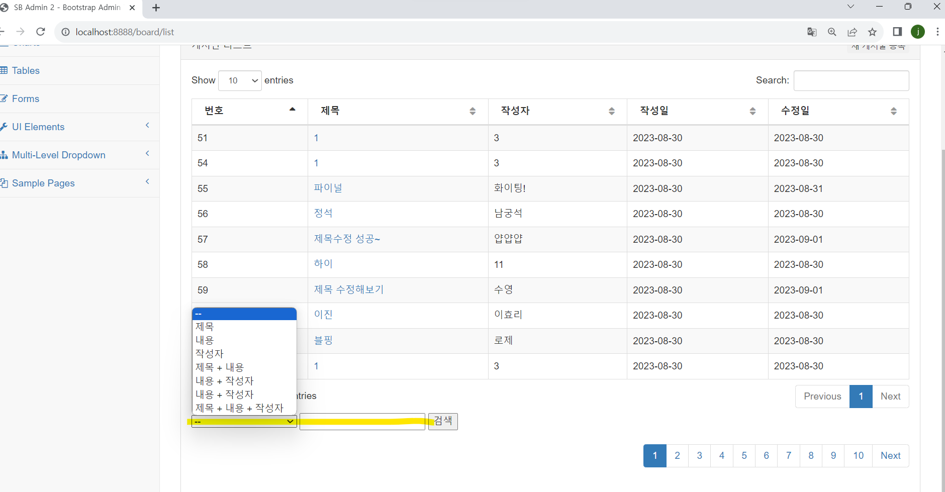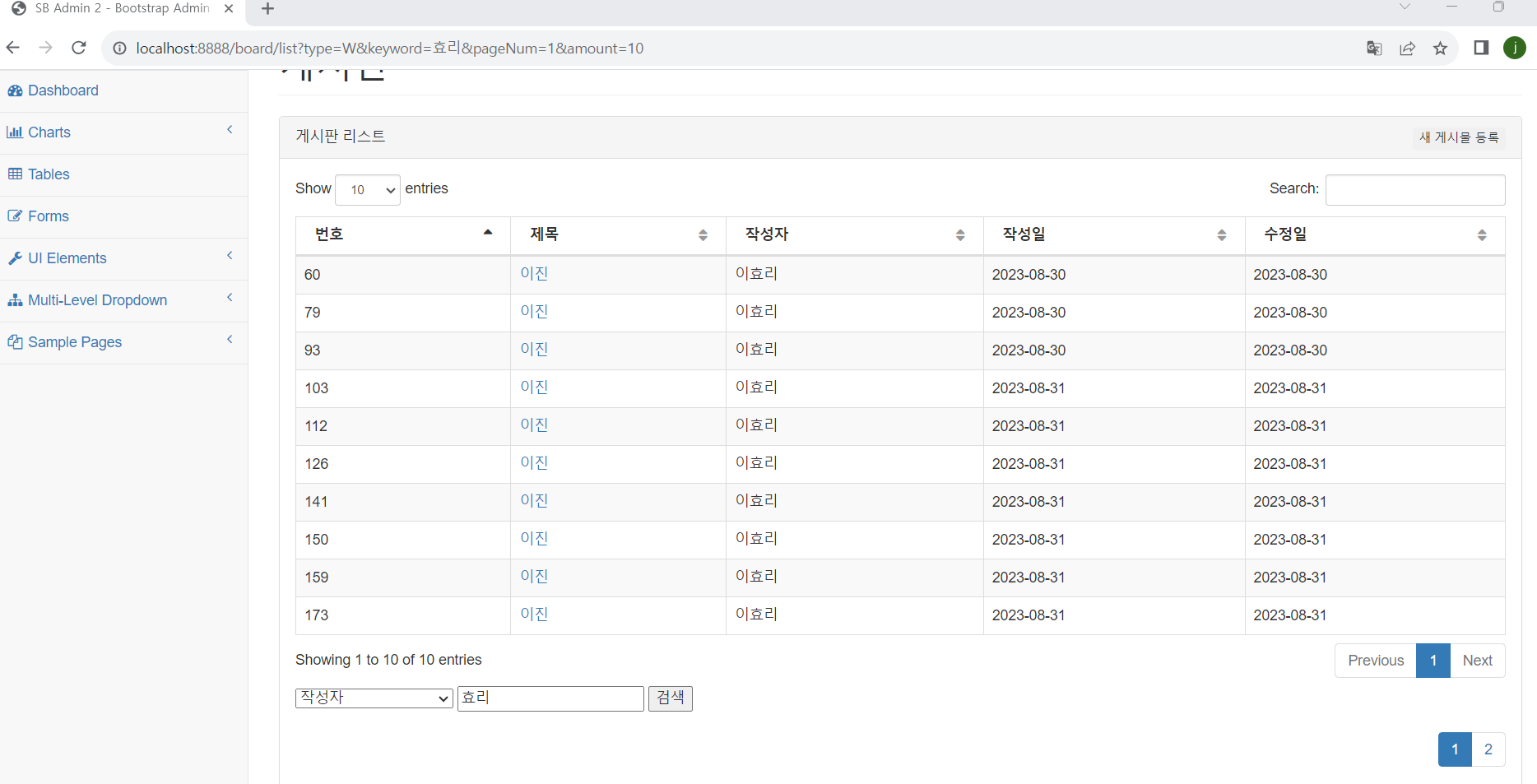 이 상태에서 2페이지를 누르면 검색조건이 초기화 됨