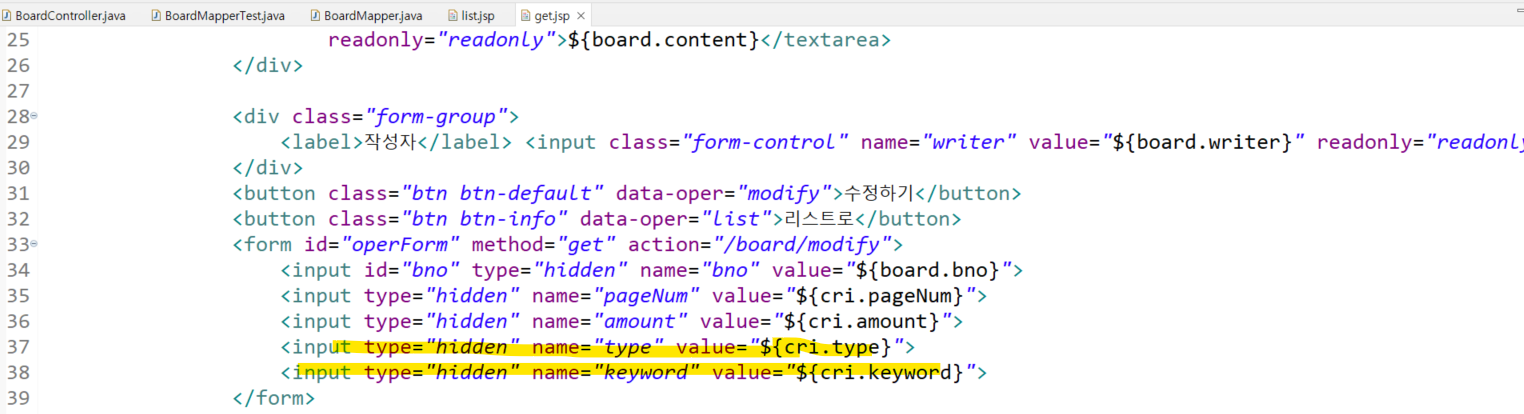 조회, 수정페이지에도 동일하게 적용시켜줘야 함.
