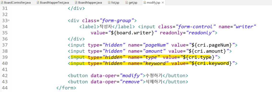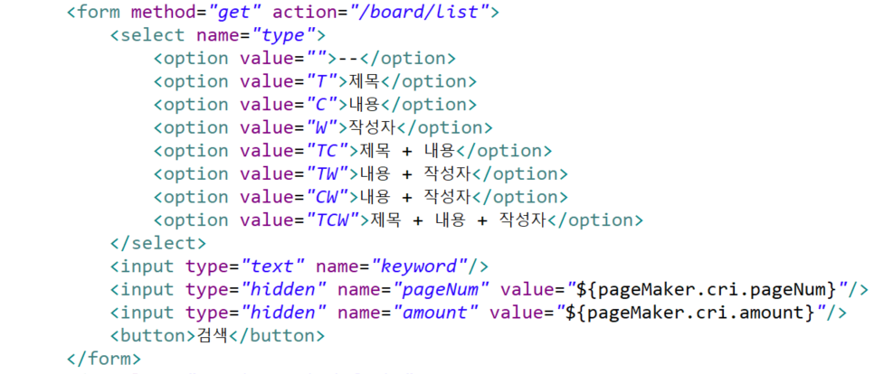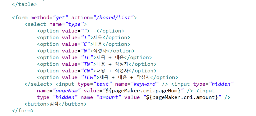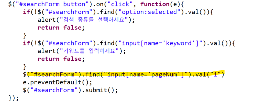코드를 추가하면 검색한 조건으로 페이지를 넘겨도 검색한 조건이 유지 됨.