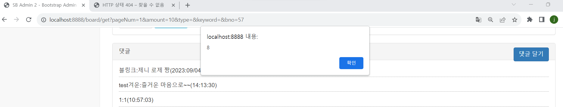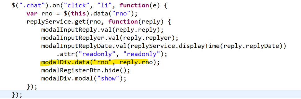 data값을 rno로 바꾸고 댓글을 클릭하면 댓글 번호가 뜸.