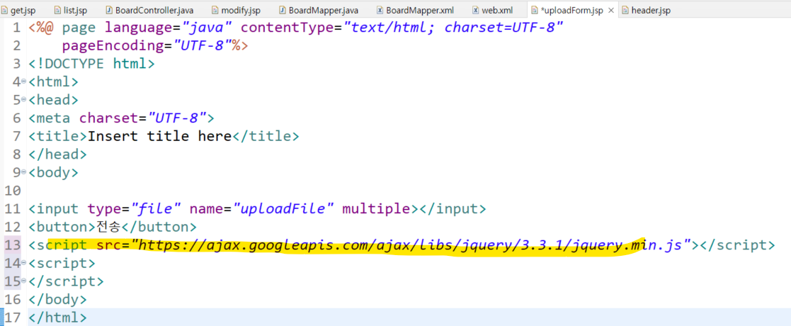 Ajax사용하는 경우 form태그 삭제 후 , jquery 스크립트 추가해주어야 한다.