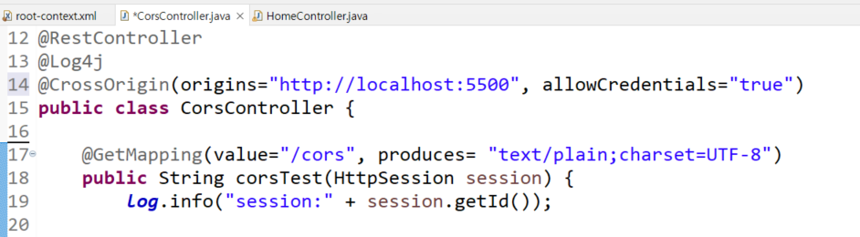 @CrossOrigin은 클래스 위에 있어도 되고, 메서드 위에 있어도 됨