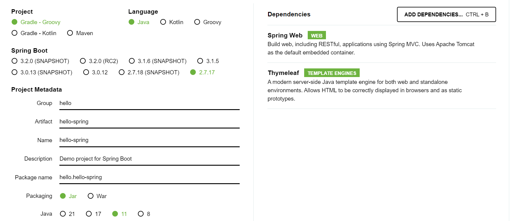 spring-boot-starter-thymeleaf: 타임리프 템플릿 엔진(View)