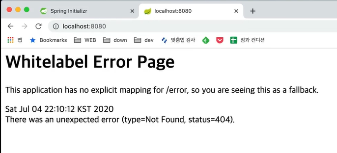 main을 실행 -> 웹브라우저에 localhost : 8080 입력해서 아래의 페이지 나오면 성공